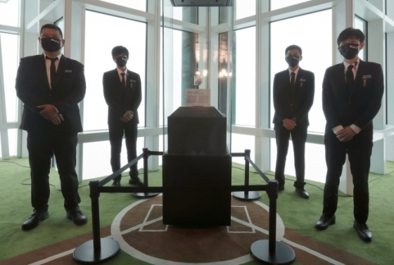 '61억원짜리' 오타니 쇼헤이(30·LA 다저스)의 시즌 50호 홈런 볼이 '철통 보안' 속에 전시되고 있다.