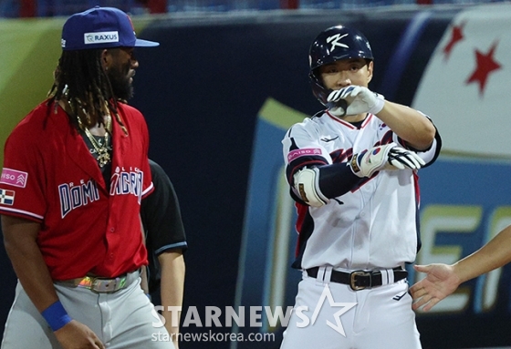 스포츠야구[포토] 송성문 '누녜즈, 아파트는 처음이지?'발행 : 2024.11.16 ・ 21:59타이베이(대만)=김진경 대기자'2024 WBSC 프리미어12' B조 예선 한국-도미니카전이 16일 대만 티엔무 야구장에서 열렸다.한국 송성문이 5회말 2사에서 중전 안타로 출루한 후 세리머니를 하고 있다.<저작권자 © 스타뉴스, 무단전재 및 재배포 금지>류중일정해영신민재김도영고영표괵도규추천 기사김진경 대기자기자홈좋아요 스포츠-야구의 인기 급상승 뉴스스포츠-야구의 최신 뉴스