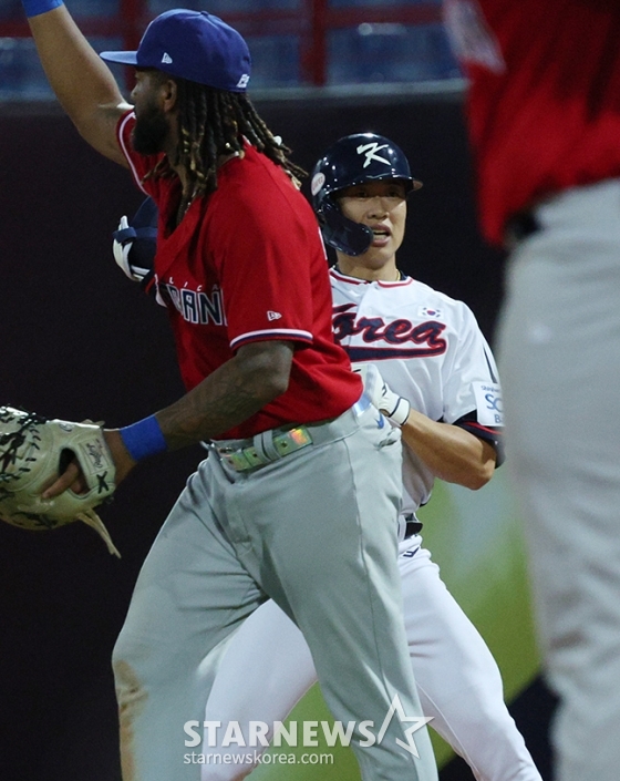 스포츠야구[포토] 송성문 '누녜즈 비켜!'발행 : 2024.11.17 ・ 00:33타이베이(대만)=김진경 대기자'2024 WBSC 프리미어12' B조 예선 한국-도미니카전이 16일 대만 티엔무 야구장에서 열렸다.한국 송성문이 8회말 1타점 적시타를 날리고 출루한 후 환호하고 있다<저작권자 © 스타뉴스, 무단전재 및 재배포 금지>류중일정해영신민재김도영고영표괵도규추천 기사김진경 대기자기자홈좋아요 스포츠-야구의 인기 급상승 뉴스스포츠-야구의 최신 뉴스