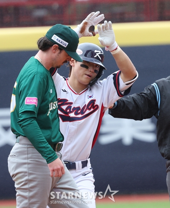 스포츠야구[포토] 김도영 '마지막 경기서도 아파트'발행 : 2024.11.18 ・ 14:14타이베이(대만)=김진경 대기자'2024 WBSC 프리미어12' B조 예선 한국-호주전이 18일 대만 티엔무 야구장에서 열렸다.한국 김도영이 3회말 1사 2루에서 선제 1타점 좌중간 안타를 날리고 상대 실책으로 2루까지 출루한 후 세리머니를 하고 있다.<저작권자 © 스타뉴스, 무단전재 및 재배포 금지>류중일정해영김도영고영표괵도규곽빈추천 기사김진경 대기자기자홈좋아요 스포츠-야구의 인기 급상승 뉴스스포츠-야구의 최신 뉴스