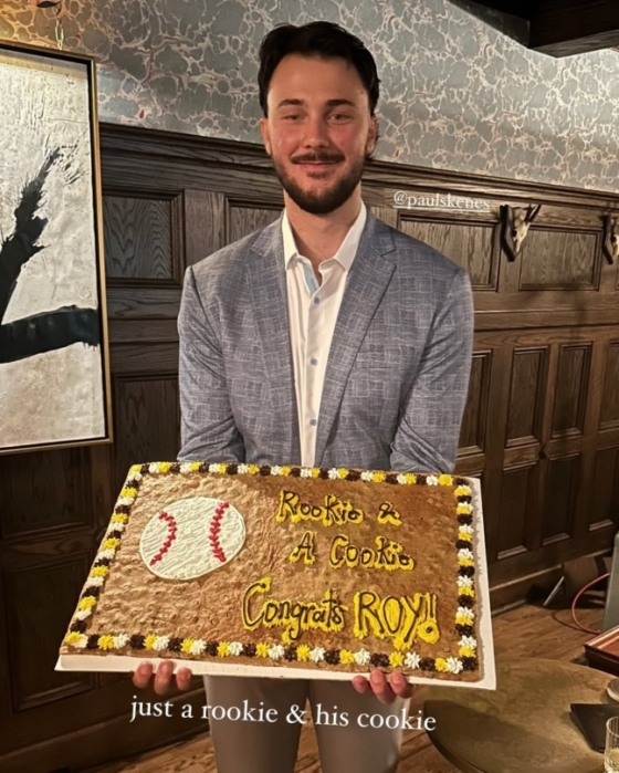 스킨스의 곁에는 대학 동문이자 올해 그의 선발 등판마다 열광적인 응원으로 화제가 된 여자친구 던도 함께였다. 던은 직접 구운 스킨스의 신인왕 기념 쿠키를 선물하며 기쁨을 함께 누렸다. 이는 메이저리그 공식 SNS 계정에도 소개돼 화제가 됐다. 던은 인기 체조선수이자 540만 팔로워를 지닌 셀럽답게 얼마 전 스킨스의 단 하나뿐인 데뷔전 루키 야구 카드를 위해 적극적으로 나서기도 했다.