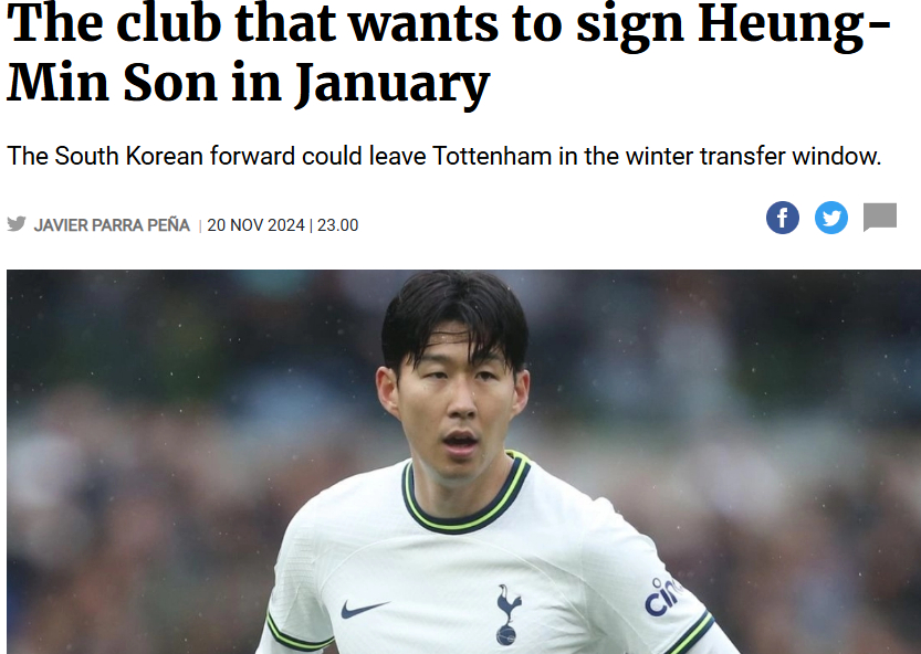심지어 매체는 "손흥민은 1년 연장 조항이 있다. 곧 토트넘 수뇌부와 만날 것이다"라며 "재계약 문제는 지난 9월에도 논의됐다. 손흥민은 당시 재계약에 관심이 없음을 전했다. 그 사이 앙제 포스테코글루(59) 감독이 손흥민의 잔류를 설득했다"고 전했다.