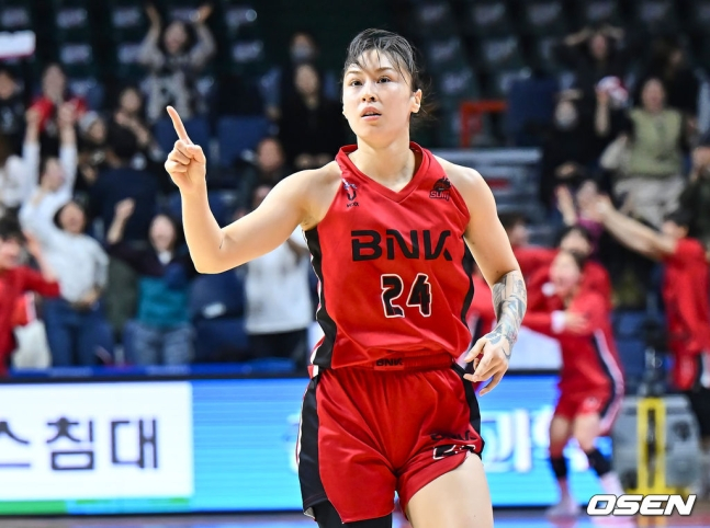 우리은행은 에이스 김단비가 42분39초를 뛰며 30득점 12리바운드로 활약을 이어가며 승리의 주역이 됐다. 여기에 이명관(15득점 6리바운드)이 클러치 능력을 보여주며 힘을 보탰다. 여기에 미야사카 모모나(9득점)와 심성영(9득점)까지 필요한 점수를 올려줬다. BNK는 안혜지(18득점)와 박혜진(17득점), 이소희(14득점)가 두 자릿수 득점을 올렸다. 여기에 3쿼터까지 2득점으로 침묵하던 김소니아도 결정적인 득점을 뽑아내 연장으로 승부를 끌고 갔다.