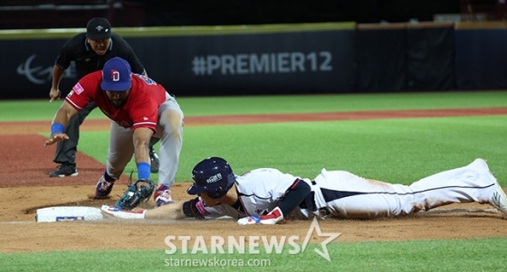 대신 도미니카공화국전(16일)에는 4-6으로 뒤지던 8회 말 나승엽의 대주자로 출전, 박동원과 송성문의 안타 때 홈으로 들어왔다. 박동원의 좌전안타 때 3루로 귀루하는 과정에서 비디오 판독이 이어지는 순간도 있었는데, 그는 "세이프를 확신했는데, 아무렇지 않은 척을 하려 했지만 속에서는 미치겠더라"고 고백했다.