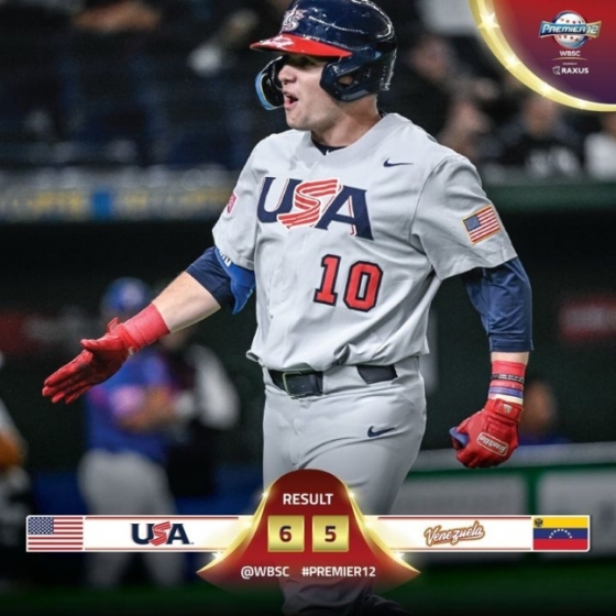 미국 야구 대표팀은 23일 일본 도쿄돔에서 열린 베네수엘라와 슈퍼라운드 3번째 경기에서 6-5로 승리했다.