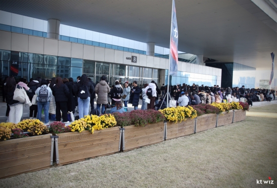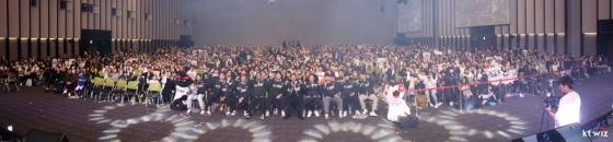 뜨거운 열기가 수원 컨벤션센터를 감쌌다. KT를 진심으로 사랑하고 응원하는 2000여명의 팬이 현장을 찾아 행복한 시간을 보냈다. KT 관계자에 따르면 이날 새벽 6시부터 부지런한 팬들은 텐트와 캠핑 의자를 갖고 와 대기하기도 했다.