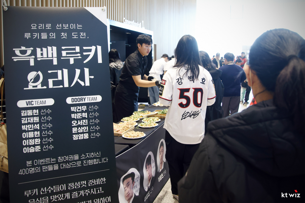 '흑백 루키 요리사' 코너에 참여한 김동현(18·2025 신인 1라운드 전체 9번)은 "팬 분들께서 항상 우리를 기다려 주셨는데 오늘은 우리가 자그마한 요리로 팬 분들을 마중할 수 있어 뜻깊었다. 맛이 있었을지 모르지만 직접 음식을 건넸더니 행복해하신 모습에 내가 다 뿌듯했다. 요리 대결도 우리 흑팀이 이겨서 배로 기분 좋다. 팬 서비스로 조금이나마 팬 분들 사랑에 보답한 것 같아 기분 좋은 하루"라고 소감을 밝혔다.
