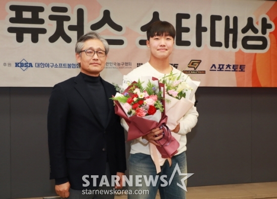정현우(키움·스타상 수상)와 함께 고교 '톱 2' 평가를 받았던 정우주는 전체 2순위로 한화의 지명을 받았지만 계약금은 정현우와 같은 5억원을 받았다. 이번 시상식에선 정현우를 제치고 고교 최고 투수 평가를 받고 부상으로 트로피와 300만원 상당의 스포츠용품 교환권까지 손에 넣었다.