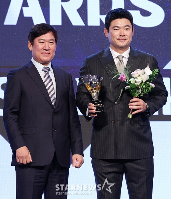 노경은은 26일 오후 2시 서울 롯데호텔 월드 크리스탈볼룸에서 열린 '2024 신한 SOL 뱅크 KBO 시상식'에서 홀드 상을 수상했다.