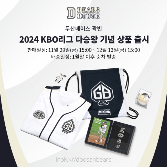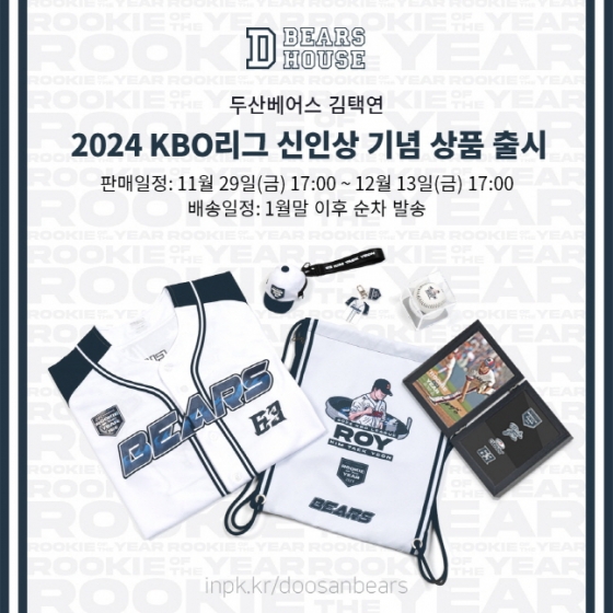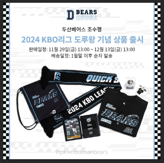 두산 베어스는 29일 2024시즌 타이틀 홀더의 기념상품을 출시한다. 상품은 다승왕(곽빈), 도루왕(조수행), 신인상(김택연) 수상을 기념하기 위해 준비했다. 구매를 희망하는 팬들의 편의를 위해 예약 판매(프리 오더) 방식으로 진행한다.