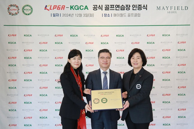 한국여자프로골프협회(KLPGA)는 3일 한국골프연습장협회(KGCA)와 함께 진행하는 'KLPGA-KGCA 공식 골프 연습장 인증사업' 15호로 서울 강서구에 위치한 '메이필드 골프클럽'을 선정해 인증식을 열었다고 밝혔다. 인증식에는 KLPGA 김순희 수석부회장, KGCA 김보민 상근부회장, 메이필드호텔 서울 김영문 대표가 참석했다.
