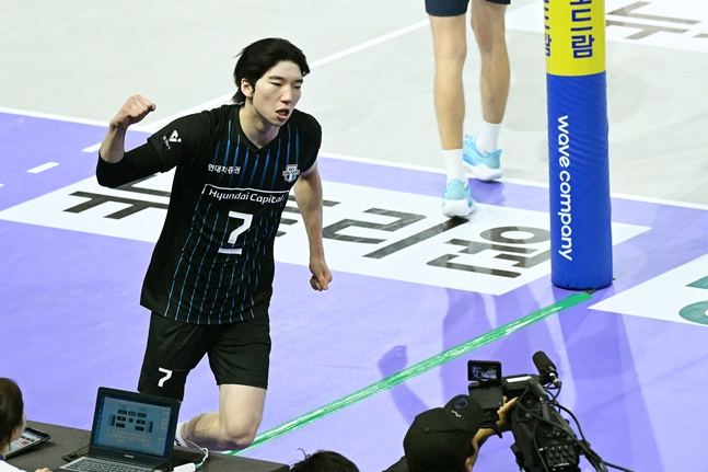 현대캐피탈이 무섭게 추격에 나섰으나 정한용이 퀵오픈과 재치 있는 왼손 공격으로 추격을 허용치 않았다. 진지위의 블로킹까지 터지며 앞서갔다.