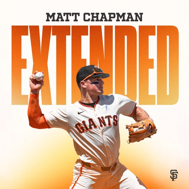 올 시즌을 앞두고 샌프란시스코로 이적한 채프먼은 타율은 0.247로 낮았지만, 27개의 홈런을 터트리며 활약했다. 여기에 단 8경기만 빠지는 강철 체력도 인상적이었다. 이에 시즌 막판 샌프란시스코와 6년 1억 5100만 달러(약 2153억 원) 연장계약을 체결했다.