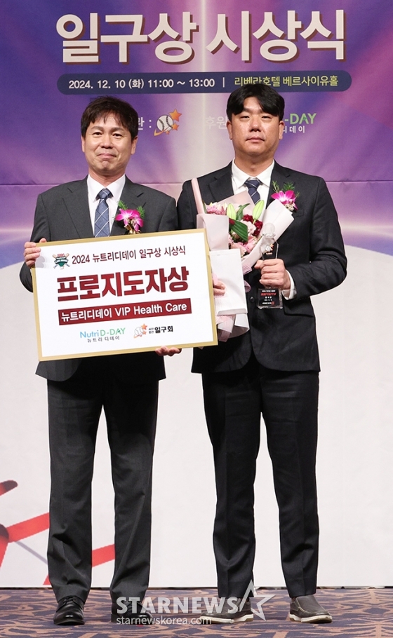 스포츠야구[포토] 홍세완 코치 '도영아 내도 니 땜시 살어야'발행 : 2024.12.10 ・ 14:40청담동=김진경 대기자2024 뉴트리디데이 일구상 시상식이 10일 서울강남구 리베라 호텔에서 열렸다.홍세완 KIA 코치가 전준호 일구회 이사로부터 '프로 지도자상' 수상 후 포즈를 취하고 있다.<저작권자 © 스타뉴스, 무단전재 및 재배포 금지>일구대상뉴트리디데이김도영정근우박철순김택연추천 기사김진경 대기자기자홈좋아요 스포츠-야구의 인기 급상승 뉴스스포츠-야구의 최신 뉴스
