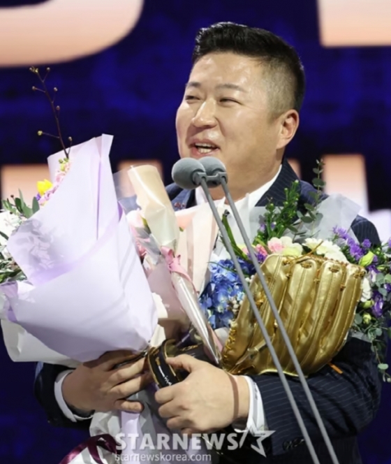 최근 계엄 사태로 인한 후폭풍으로 혼란에 빠진 나라를 걱정하면서도 1000만 관중 시대를 열게끔 해준 야구 팬들에 대한 걱정도 동시에 나타냈다. 야구장에서는 물론이고 베테랑은 무엇이 다른지를 시상식 현장에서도 여실히 보여준 최형우다.