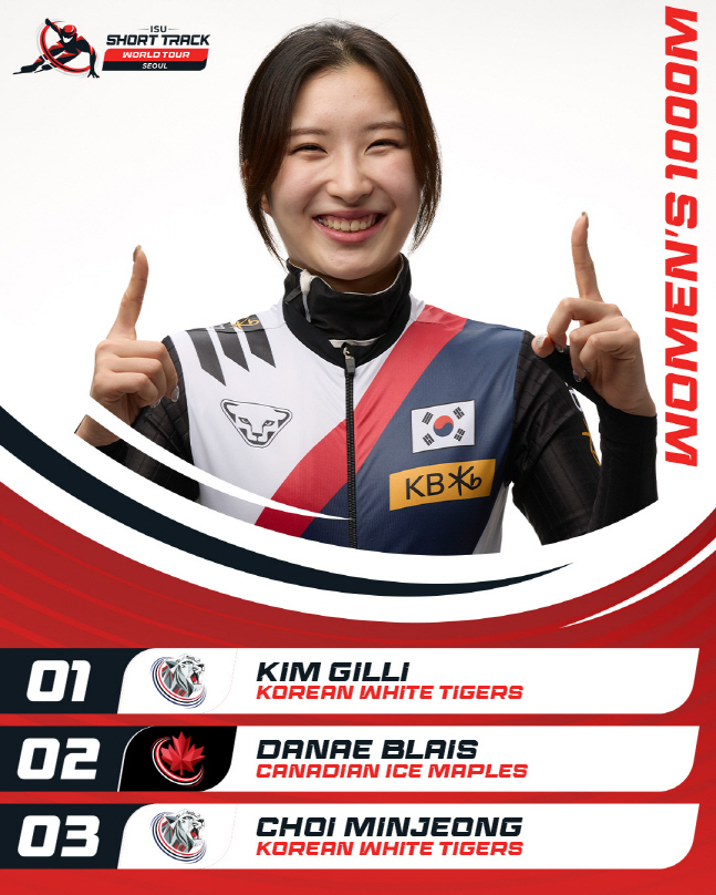 김길리는 14일 서울시 양천구 목동 실내빙상장에서 열린 KB금융 2024~2025 국제빙상경기연맹(ISU) 쇼트트랙 월드투어 4차 대회 여자 1000m 결승에서 1분30초884의 기록으로 우승을 차지했다.