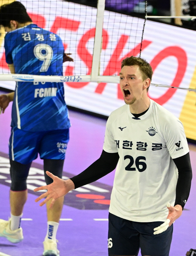 토미 틸리카이넨(37) 감독이 이끄는 대한항공은 15일 인천 계약체육관에서 열린 대전 삼성화재와 2024~2025 도드람 V리그 남자부 3라운드 홈경기에서 세트스코어 3-1(25-15, 20-25, 25-21, 37-35)로 이겼다.