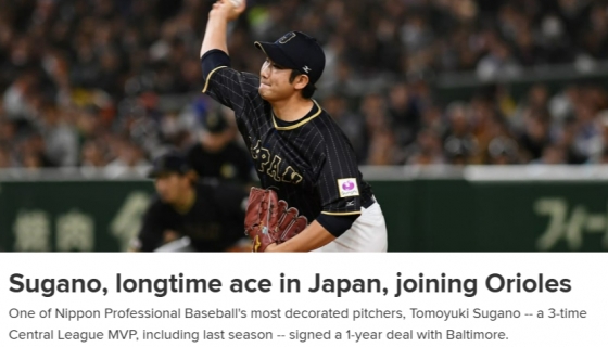 지난 2020년 미국 진출이 좌절됐던 스가노는 결국 4시즌을 더 소화한 뒤 FA(프리에이전트) 신분으로 다시 메이저리그 진출을 노렸다. 결국 볼티모어가 그의 손을 잡으면서 30대 중반이라는 적지 않은 나이에 빅리그 무대를 밟게 됐다.