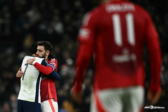 경기가 끝난 뒤 손흥민은 맨유의 주장 페르난데스와 뜨겁게 포옹했다. 승부의 결과를 떠나 같은 축구선수로 서로를 아끼고 존중하는 동업자 정신을 보여줬다. 해외 통신매체 AFP도 "토트넘 공격수 손흥민과 맨유 주장 페르난데스가 서로를 끌어안았다"고 주목했다.