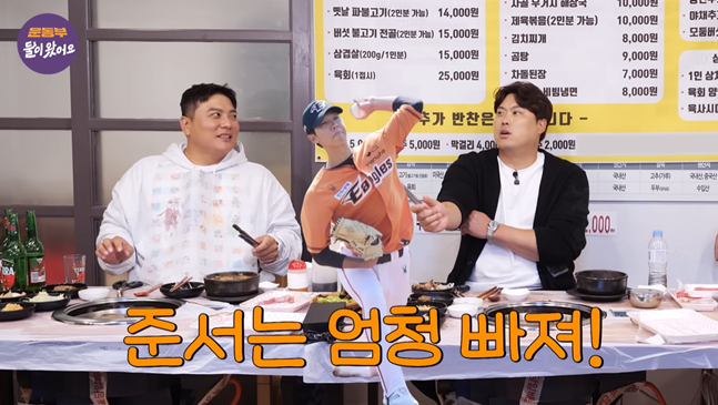 황준서의 얘기도 나왔다. 가장 밥을 사주고 싶은 후배가 누구냐는 질문에 "황준서다. 아무리 먹여도 안 되는 그런 몸이다. 뭘 먹으면 입 안에 (음식물을) 쟁여놓는다"며 "잘 먹고 살이 좀 있어야 힘도 나고 스피드도 생긴다"고 말했다.