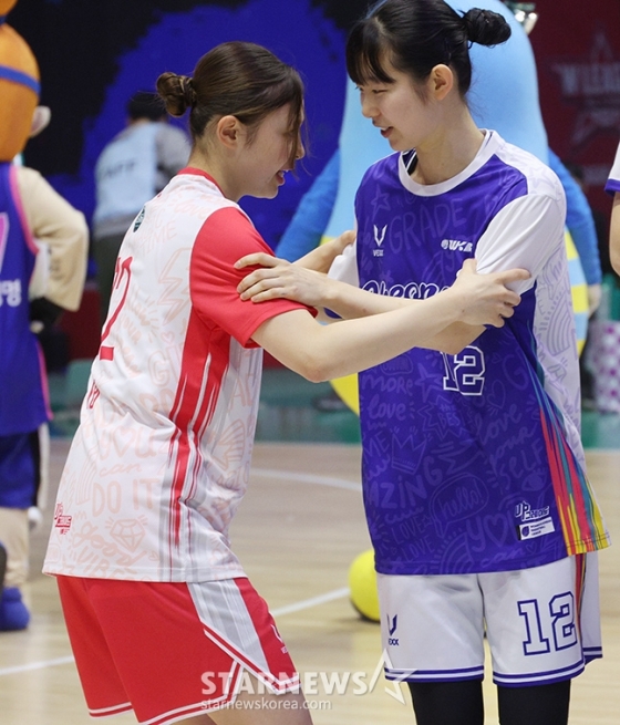 경기 전 양 팀 선수들은 각자 준비한 음악에 맞춰 화려한 퍼포먼스를 펼치며 코트에 들어섰다. 특히 신지현은 가수 지디의 '홈 스윗 홈'과 함께 힘 있는 춤사위로 관중의 함성을 자아냈다. 이어 양 팀 선수들의 기념 촬영 후 경기가 시작됐다.