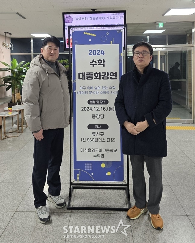 필자가 고등학교 수학 교사와 함께 '야구 수학'을 주제로 책을 쓰고 있는데, 이와 연계하고 프로야구 프런트로서의 경험을 덧붙였다. 개인적으로는 학생들한테 정해진 시간에 많은 내용을 전달하려는 욕심에 두서가 없는 느낌이었지만, 10명 이상의 학생들이 수준 높은 질문을 해 강의장 분위기는 무척 뜨거웠다.