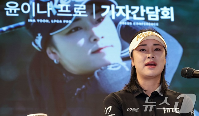 윤이나는 26일 오전 서울시 영등포구 여의도동 CCMM빌딩 컨벤션홀에서 LPGA 투어 진출 기자간담회를 가졌다.