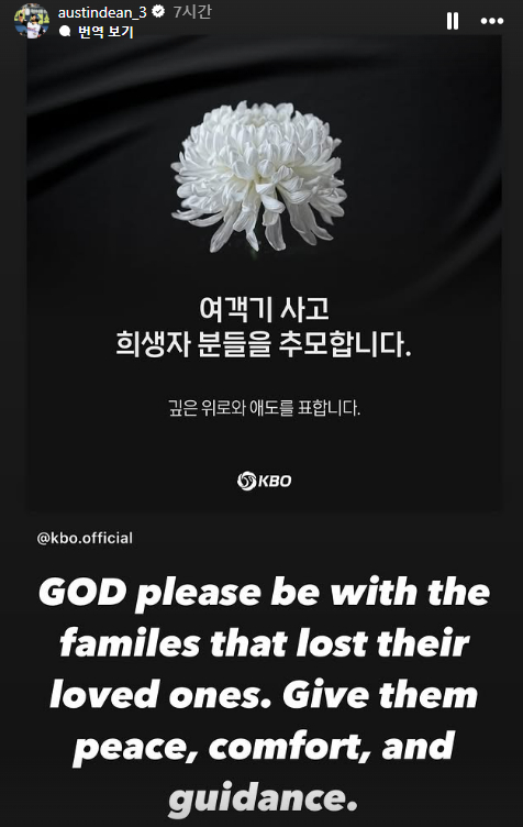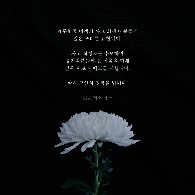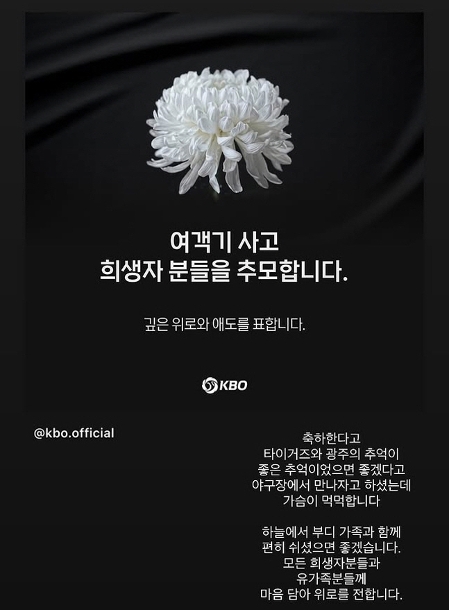 KBO도 SNS를 통해 "여객기 사고 희생자분들을 추모합니다. 깊은 위로와 애도를 표합니다"라는 글을 게시했다.