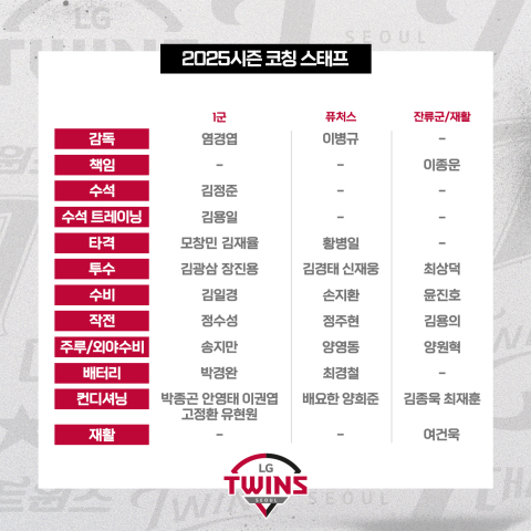 2025시즌 LG 트윈스 코칭스태프 보직 현황