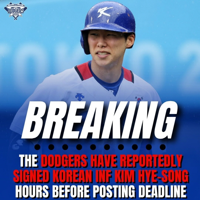 디애슬레틱은 김혜성의 다저스행 소식을 전하며 "소식통에 따르면 다저스는 김혜성이 슈퍼 유틸리티 역할을 할 것으로 기대한다"고 밝혔다.