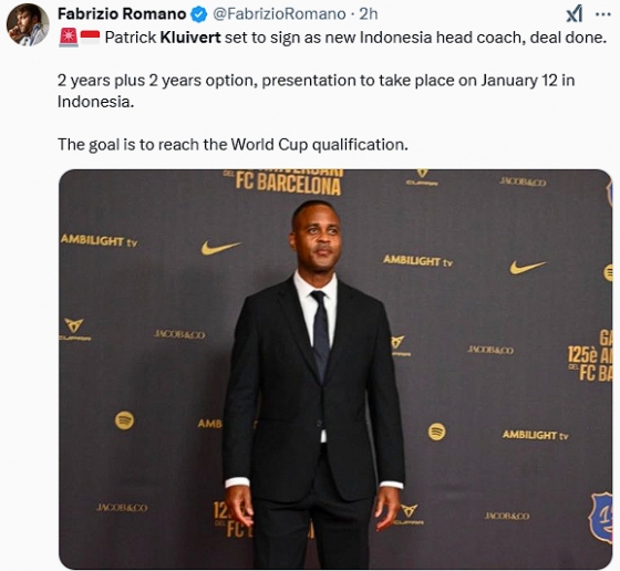 PSSI는 8일(한국시간) 공식 홈페이지를 통해 "클루이베르트를 인도네시아 대표팀의 새 감독으로 임명했다. 그는 2025년부터 2027년까지 2년 계약을 맺었다. 계약 연장 옵션도 있다"라고 발표했다.