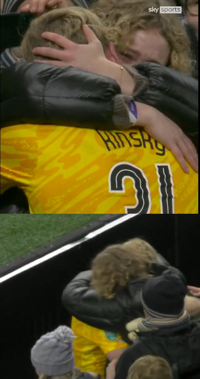 경기가 끝난 뒤 킨스키는 자신의 쌍둥이 여동생과 감동의 포옹을 나눴다. 여동생은 기쁨의 눈물을 펑펑 흘렸다. 영국 스카이스포츠는 "토트넘의 신입생 킨스키가 리버풀과 리그컵 경기에서 승리한 뒤 여동생과 아름다운 순간을 함께 했다"고 소개했다. 토트넘 팬들도 완벽한 데뷔전을 치른 킨스키를 향해 뜨거운 박수를 보냈다.