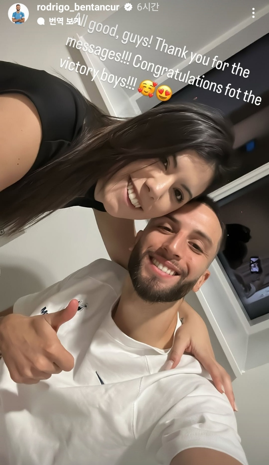불행 중 다행으로 회복한 벤탄쿠르는 개인 사회관계망서비스(SNS)를 통해 "많은 응원에 감사하다. (리버풀전)승리를 축하해 여러분!"이라고 근황을 전했다.