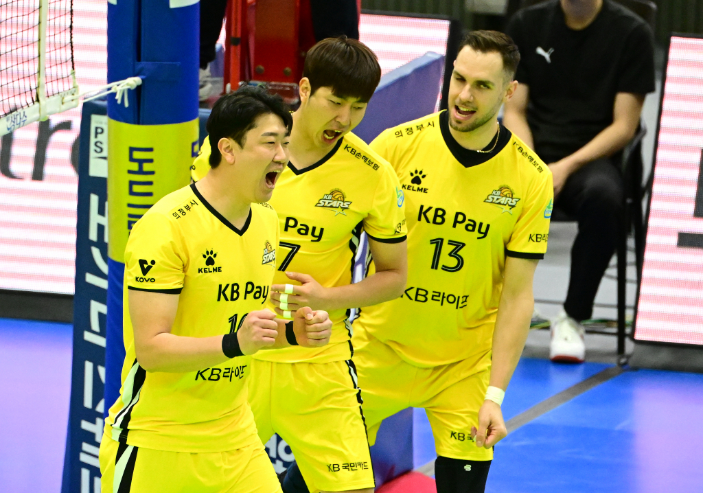 KB손해보험은 9일 수원실내체육관에서 열린 도드람 2024~2025 V리그 남자부 4라운드 첫 경기에서 한국전력을 세트 스코어 3-1(26-24, 28-30, 25-20, 25-17)로 잡았다.