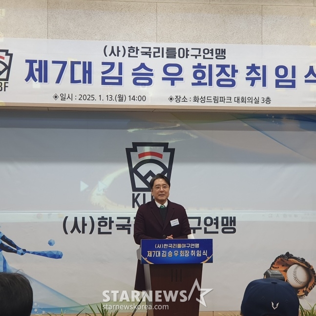 지난해 12월 열린 제7대 한국리틀야구연맹 회장 선거에서 김승우 회장은 153표 중 86표를 획득, 61표를 얻은 유승안(69) 전 회장을 누르고 당선됐다. 김 회장은 2025년 1월 1일부터 2028년까지 4년간 리틀야구를 이끈다.