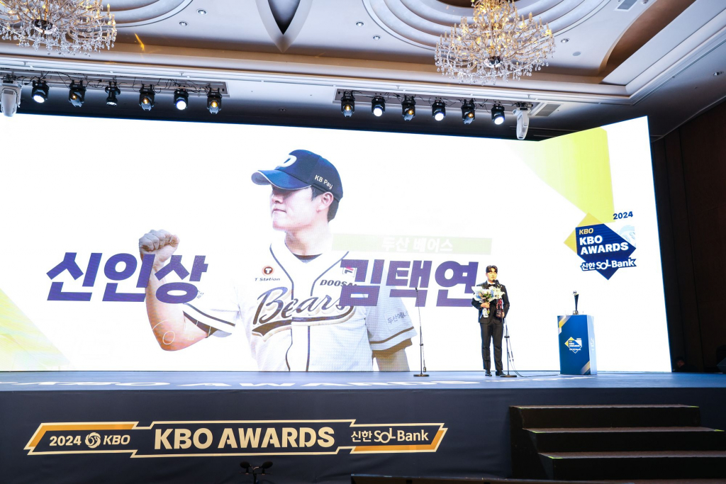 김택연은 역대 KBO 리그 고졸 신인 한 시즌 최다 세이브 기록을 새롭게 썼다. 입단 첫해부터 두산의 클로저로 당당하게 자리매김한 김택연은 결국 생애 단 한 번뿐인 신인왕을 거머쥐었다. KBO 시상식에서 김택연은 92.08%(총 101표 중 93표 획득)의 높은 득표율과 함께 신인왕 수상의 영광을 안았다.