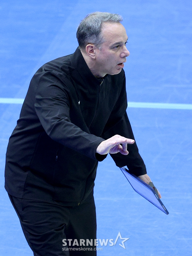 우리카드 마우리시오 감독이 작전 지시를 하고 있다.