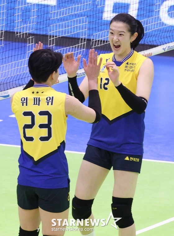 점수는 계속 벌어졌다. 현대건설은 위파위와 모마를 앞세워 연달아 점수를 냈다. 양효진의 블로킹 성공까지 더해 15-10까지 달아났다.