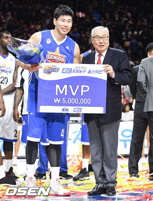 앞선 6번의 올스타전 중 가장 기억에 남는 순간이 있을까. 오세근은 "내가 올스타 MVP를 받았을 때"라고 말했다. 그는 지난 2016~17시즌 27분 44초를 뛰며 29득점 10리바운드 3어시스트로 맹활약하며 최고의 선수에 등극했는데, 묘하게도 당시에도 사직체육관에서 열렸다. 오세근은 "부산에서 했던 경기였다. 그래도 의미도 있고 기억에 남는다"고 했다.