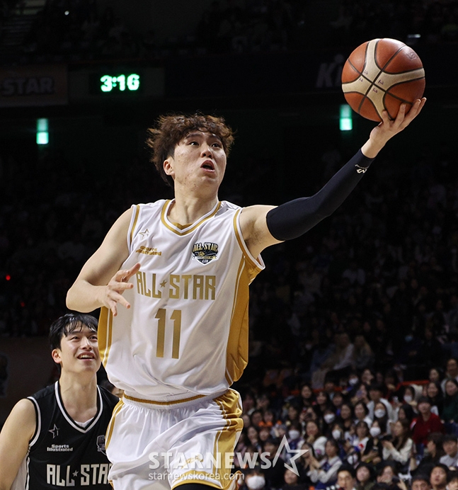 이우석은 19일 오후 2시 부산 사직실내체육관에서 열린 2024~2025 KCC 프로농구 올스타전에서 조동현 현대모비스 감독이 이끄는 '팀 공아지'의 베스트 5로 출전했다.