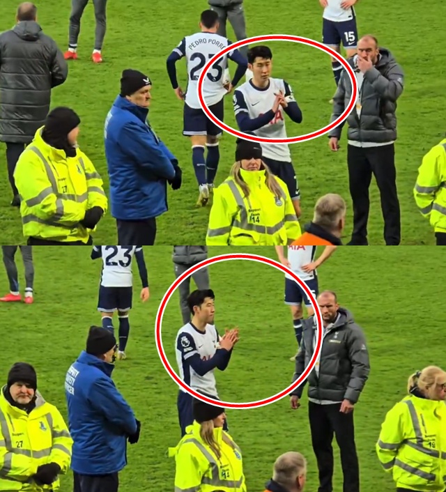 엄청난 부진 속에 팀 주장 손흥민도 고개를 숙였다. 심지어 토트넘 팬들에게 사과까지 해야 했다. 스포츠전문 더 스퍼스 워치는 손흥민이 에버턴전을 마친 뒤 에버턴 원정을 응원하기 위해 경기장을 찾은 팬들에게 사과하는 모습을 공개했다. 손흥민은 박수를 치면서 토트넘 팬들의 응원에 감사한 마음을 전했다. 그러면서 두 손을 모아 미안하다는 제스처를 취했다. 손흥민의 표정은 상당히 어두워보였다.