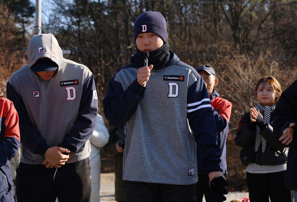 이승엽 감독은 오명진에게 어떤 말을 했을까. 오명진은 "지난해 마무리 캠프에서 만났을 때 '타격에서 2등(2024년 퓨처스리그 북부리그 타격 2위) 했다며'라고 물으셨다. 제가 치는 모습을 보시더니 잘 치겠다고 말씀해주셨다. '계속 감을 유지해서 2025년에 좋은 기회가 있으니까, 한 번 잘해보라' 하셨다"고 전했다. 이어 자신의 강점과 주 포지션에 대해 "공격이 더 강점이긴 한데, 엑스트라 수비 훈련을 자청하며 계속 뛰었다. 그러면서 수비도 많이 잡힌 것 같다. 어느 포지션이든 맡겨 주시면 잘해야겠다고 생각한다. 그래도 가장 자신 있는 건 많은 이닝을 소화한 2루 포지션"이라 답했다. 두산으로서는 이번 겨울 함께 뛴 강승호가 3루, 오명진이 2루 자리를 완벽하게 꿰찬다면 그야말로 최상의 시나리오가 아닐 수 없다.
