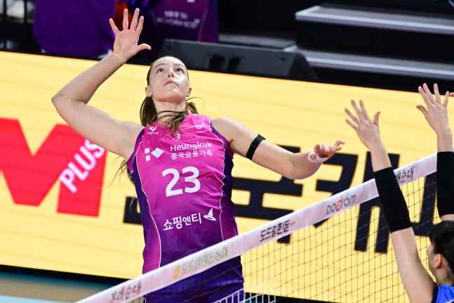 흥국생명은 21일 인천 삼산체육관에서 열린 화성 IBK기업은행과 도드람 V-리그 여자부 홈경기에서 세트스코어 3-1(25-18, 18-25, 25-20, 25-23)로 이겼다.