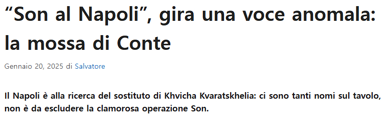 콘테 감독 지도 아래 나폴리는 올 시즌 이탈리아 세리에A 선두를 달리고 있다. 겨울 이적시장은 약 2주가 남았다. 우승에 목마른 나폴리는 시즌 도중 에이스 윙어 크바라츠헬리아를 잃었다. 손흥민이 강력한 대체자로 떠오른 상황이다. 우승 청부사로 통하는 콘테 감독은 세리에A의 유벤투스, 인터밀란을 이탈리아 정상으로 이끈 바 있다.