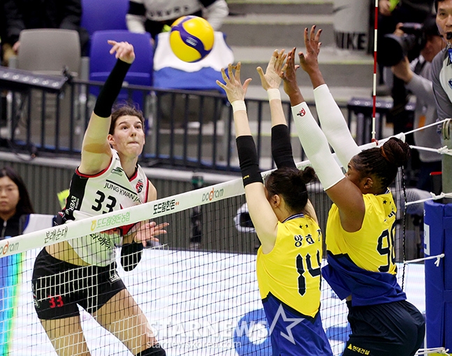 스포츠일반[포토] 부키리치 '이럴 땐 틀어치기'발행 : 2025.01.22 ・ 20:02조회수 :수원=김진경 대기자2024-2025 V리그 여자부 현대건설-정관장전이 22일 경기도 수원체육관에서 열렸다정관장 부키리치가 현대건설 양효진, 모마의 더블 블로킹 위로 강스파이크를 날리고 있다.<저작권자 © 스타뉴스, 무단전재 및 재배포 금지>브리핑추천 기사김진경 대기자기자홈좋아요스포츠-일반의 인기 급상승 뉴스스포츠-일반의 최신 뉴스AD