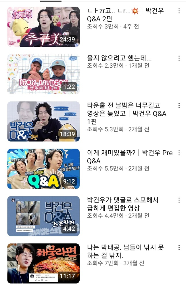부상으로 빠져있는 동안 박건우는 기존에 만든 개인 유튜브 채널 '박건우tv' 콘텐츠 촬영을 이어갔다. 23일 현재 구독자 약 2만 1600명으로 현역선수 개인 채널로는 꽤 많은 구독자를 자랑하고 있다. 그는 "계속 야구만 했기 때문에 다른 걸 해보면 어떨까 했다"며 "진짜 어렵더라. 확실히 세상에 쉬운 직업이 없다. 유튜브 하시는 분들이 존경스럽다"고 밝혔다. 그는 "야구에만 전념하겠다"며 시즌 중에는 유튜브를 잠시 쉬어갈 뜻을 밝혔다.