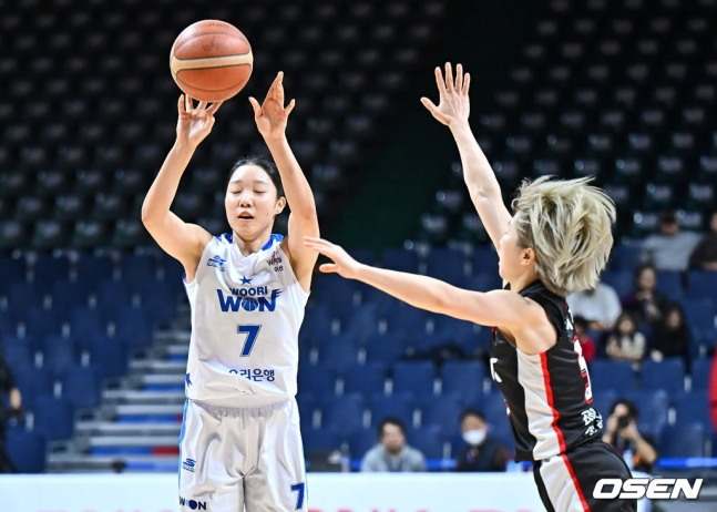 우리은행은 24일 오후 7시 부산 사직실내체육관에서 열린 부산 BNK 썸과 하나은행 2024~2025 여자프로농구 5라운드 원정경기에서 60-54 승리를 거뒀다.