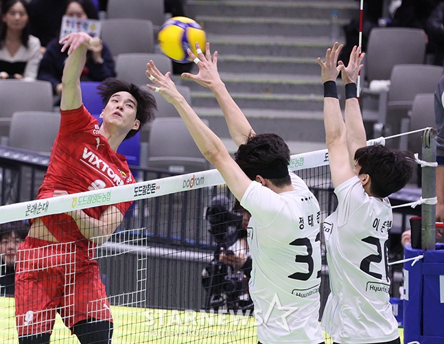 스포츠일반[포토] 임성진 '수원왕자의 눈치작전'발행 : 2025.01.24 ・ 19:08수원=김진경 대기자2024-2025 프로배구 V리그 남자부 한국전력-현대캐피탈전이 24일 경기도 수원체육관에서 열렸다.한전 임성진이 현대캐피탈 정태준, 이준협의 더블 블로킹 위로 강스파이크를 날리고 있다.<저작권자 © 스타뉴스, 무단전재 및 재배포 금지>프로배구V리그한전현캐현대캐피탈레오추천 기사김진경 대기자기자홈좋아요 스포츠-일반의 인기 급상승 뉴스스포츠-일반의 최신 뉴스