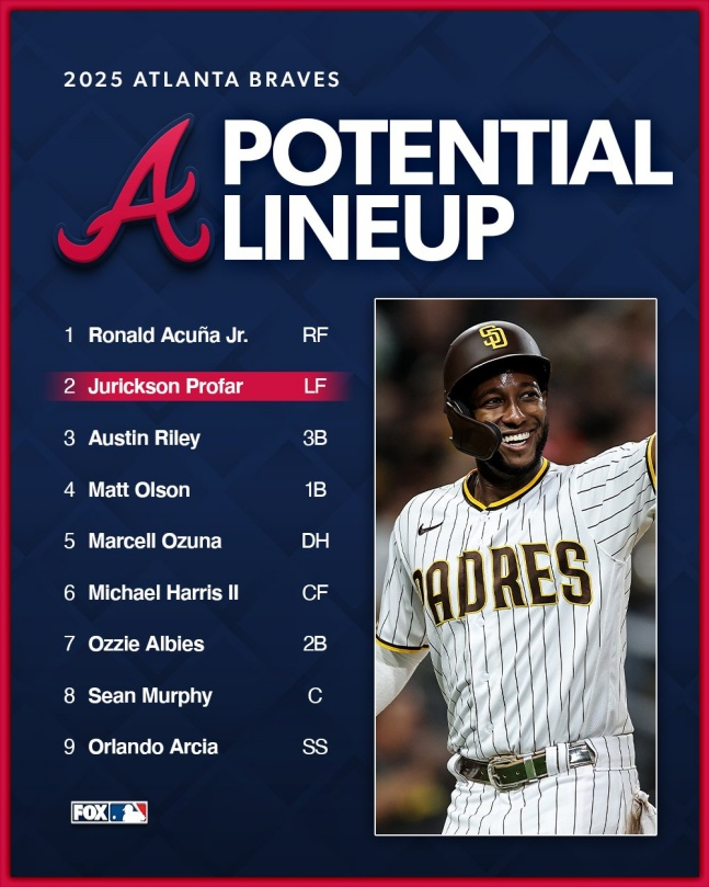 지난 24일(한국시간) 애틀랜타는 FA 외야수 주릭슨 프로파(32)와 3년 4200만 달러(약 601억 원) 계약을 체결했다. 올해 1200만 달러(약 172억 원)를 받고 다른 2년간 1500만 달러(약 215억 원)씩 받는 조건이다. 지난해 프로파는 샌디에이고 파드리스에서 158경기 타율 0.280(564타수 158안타) 24홈런 85타점 10도루, OPS(출루율+장타율) 0.839로 실버슬러거를 수상하는 등 공격에서 제 몫을 했다.