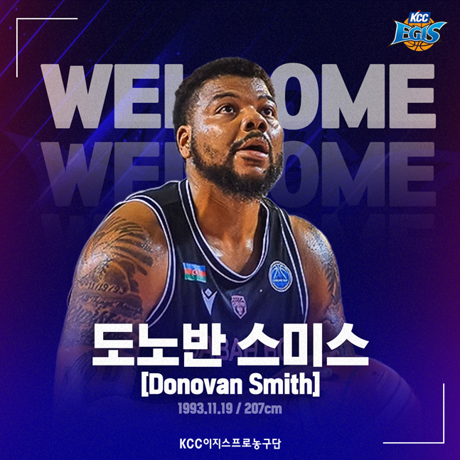 KCC는 27일 "부상으로 이탈한 리온 윌리엄스의 대체 외국인 선수로 도노반 스미스(32세, 207cm) 선수 영입을 완료했다"고 발표했다.